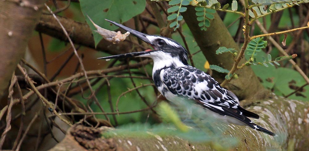 Pied Kingfisher with fresh fishOne of the target species on the lake is the African Finfoot. This species, and the tropical Asian Finfoot, and the Sun Bittern of the tropical Americas, are all in the same family, and it is a bit of mystery what other birds the group is related to. This is a bird that is normally shy and hard to see, but this lake is one of the best places to see them. On my cruise, I saw three individuals.