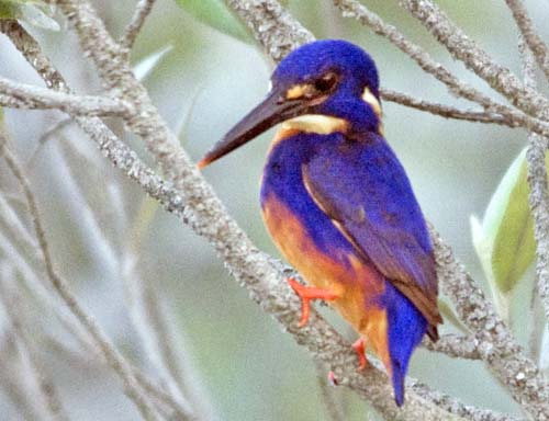 the stunning but very small Azure Kingfisher (Damon Ramsey)Red-headed Honeyeater, Brown Honeyeater, Little Friarbird, Yellow White-eyes, Mangrove Robin (with a mournful double descending whistle), White-breasted Whistler and Mangrove Golden Whistler (both with enthusiastic and familiar whip like calls), Mangrove Grey Fantail (looks very similar to the Grey Fantail). These last 5 birds are hard to find species that are pretty much endemic to mangroves.
