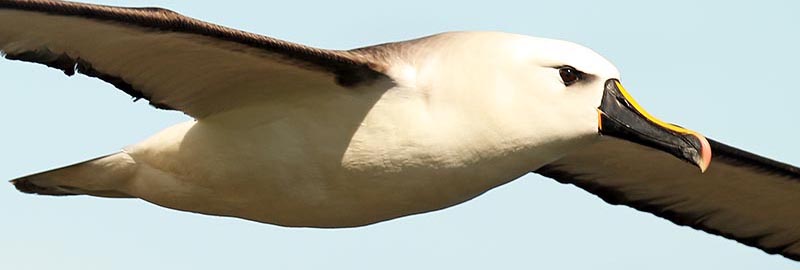 (off Cape Horn)Thalassarche melanophris, 'Black-browed Mollymawk'. Found all around Southern Ocean and up along temperate coasts of southern continents. Breeds southern South America and New Zealand.